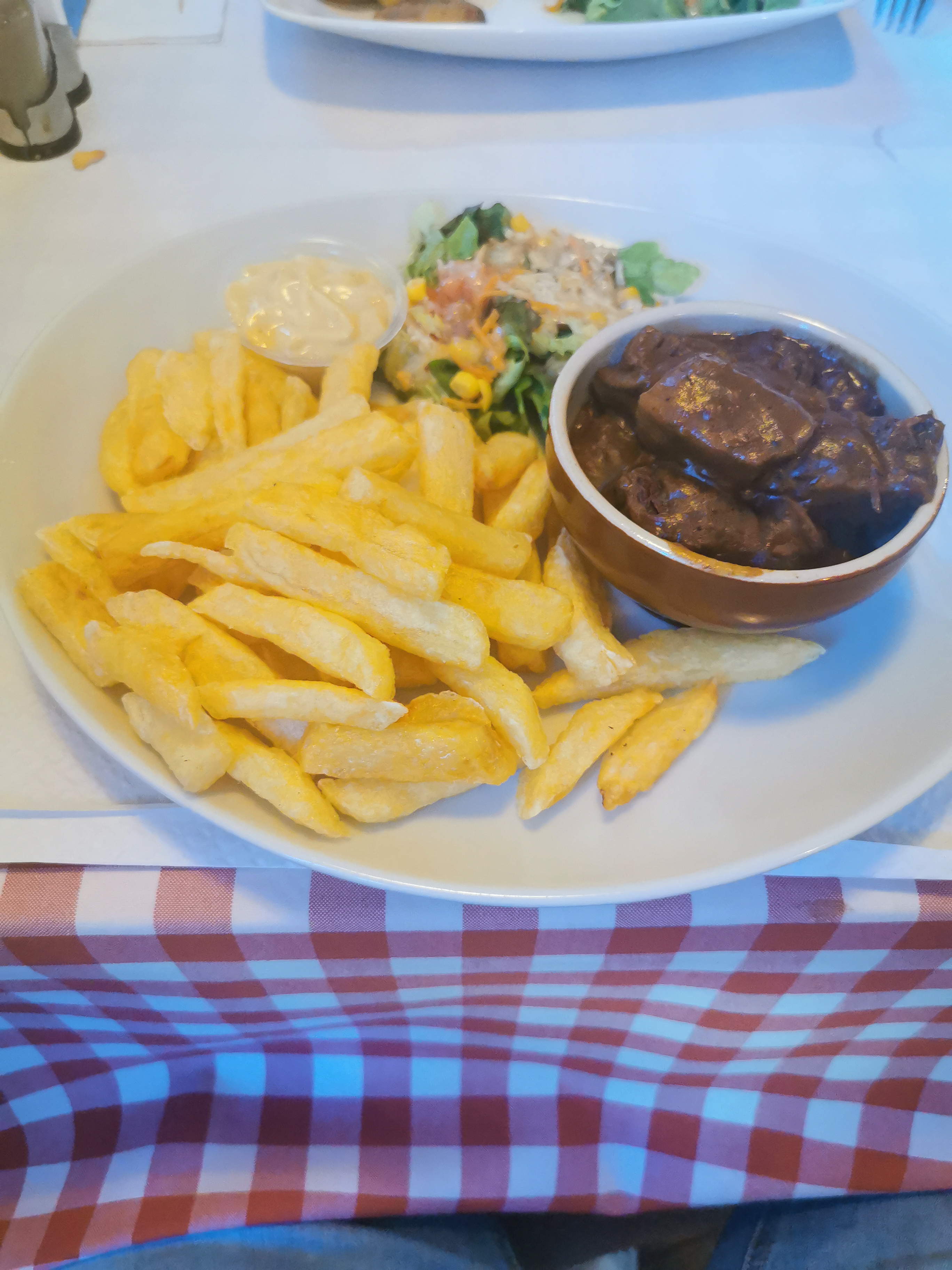 Frites dégueulasses et 3 morceaux de carbonnade avec 1 cuillère sauce c'est abusé pour le prix