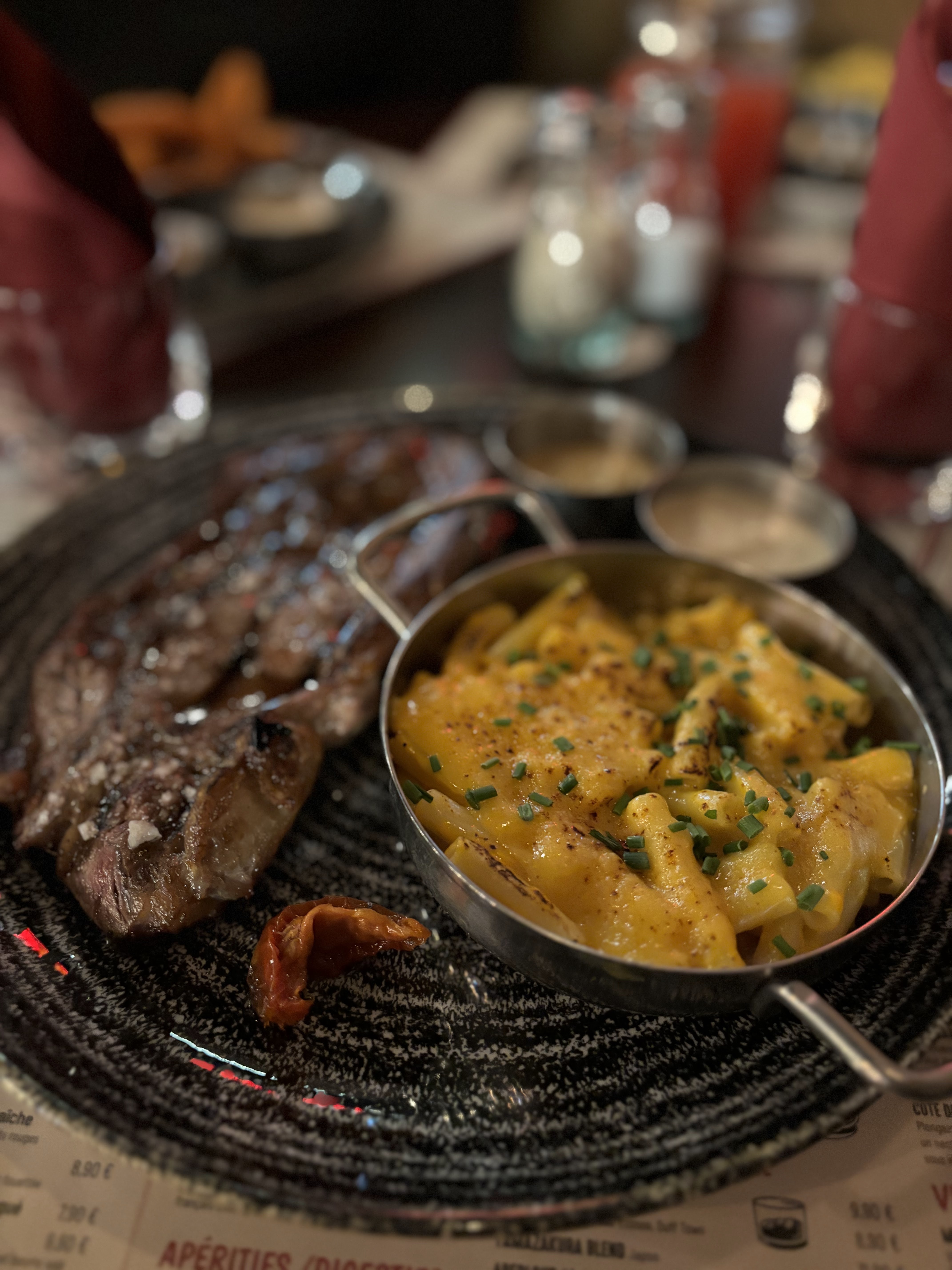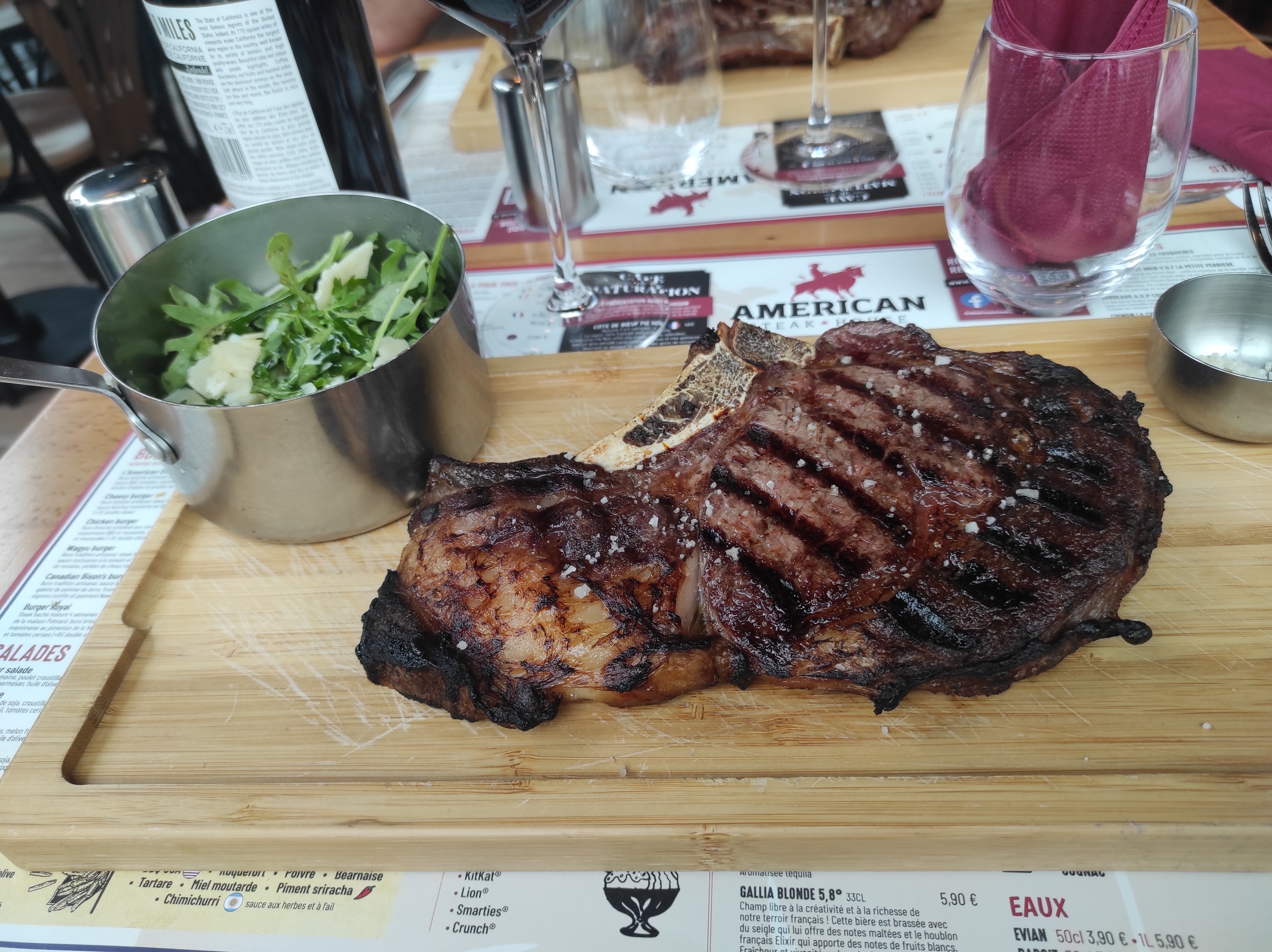 Petit resto en amoureux, excellente soirée avec une ambiance posée, de bons cocktails ou bières pour accompagner le repas qui a été excellent de l'entrée au dessert ! Excellente viande maturée et pour les plus gourmands le TOMAHAWK ! La photo parle d'elle même ! Service irréprochable avec une mention spéciale et les félicitations du jury pour Tristan en salle !!!! Excellent resto à viande mais pas que, les desserts et entrées sont excellents ! On ne peut que recommander, allez-y les yeux fermés mais avec l'esprit et surtout l'estomac ouvert, vous serez sûr de passer un bon moment 😉