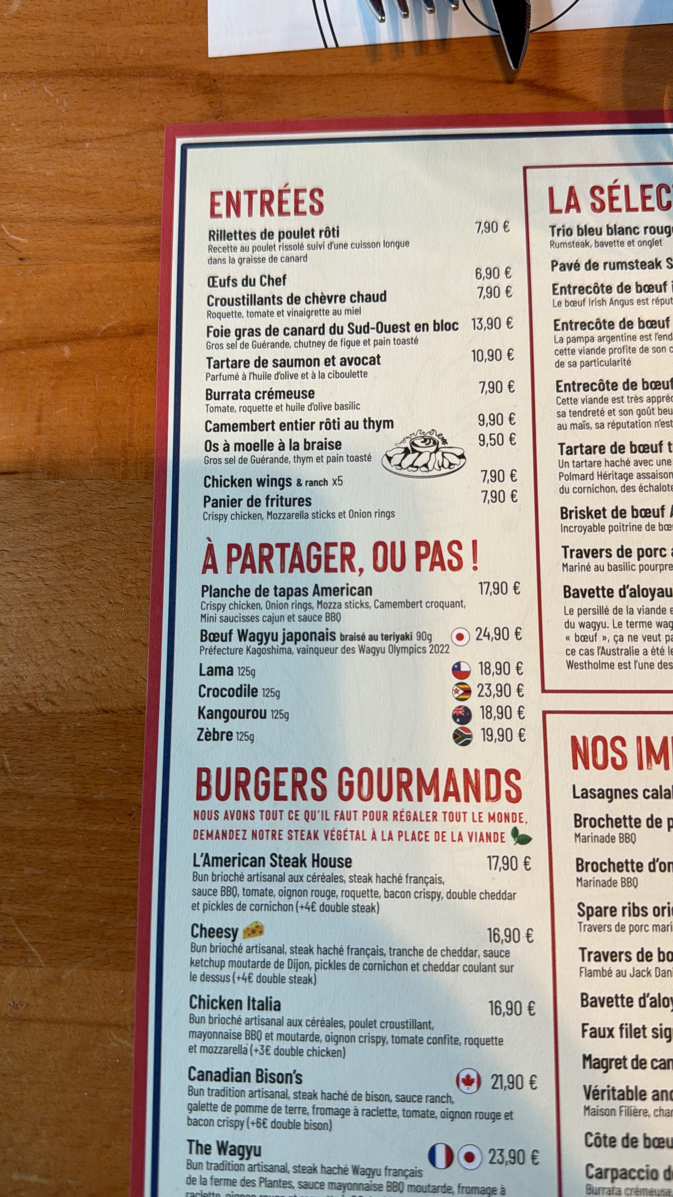 Bonjour S L , Toute l'équipe vous remercie de nous avoir laissé cette note qui nous fait très plaisir ! Nous mettons tout en œuvre pour que vous passiez le meilleur des moments chez American Steak House et nous sommes très heureux que vous vous soyez régalé avec nos délicieuses viandes. On espère vous revoir bientôt dans l’un de nos restaurants, La team American Steak House 🥩🔥 (ps: le menu enfant se trouve au dos de notre menu avec un joli coloriage pour occuper nos bouts de chou 😉)