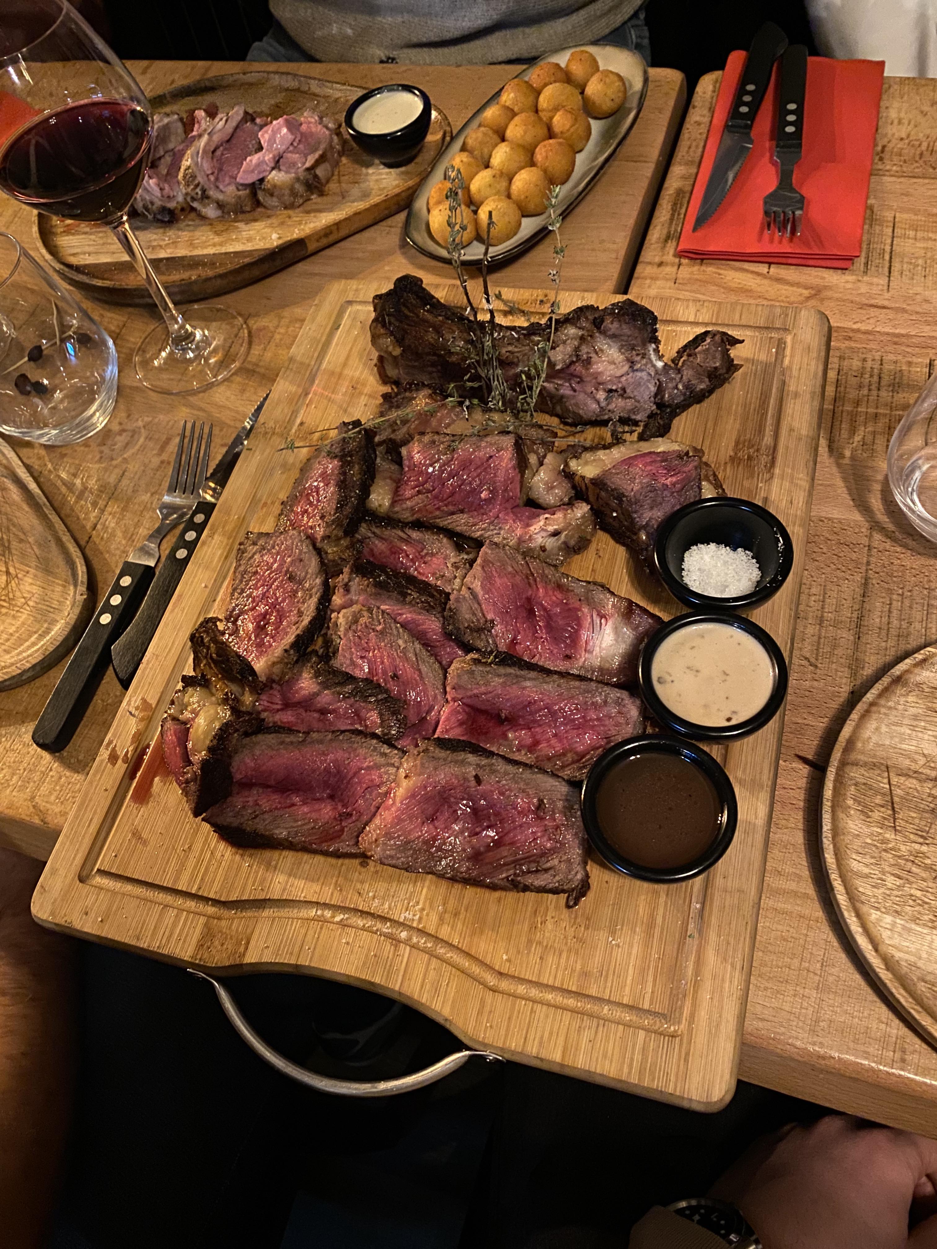 Restaurant spécialisé dans la viande Le cadre est très sympa, le patron est accueillant, la cuisine excellente 🤩 La côte de bœuf mature est exceptionnelle 😍 Un bémol sur le prix mais la qualité est bien là!