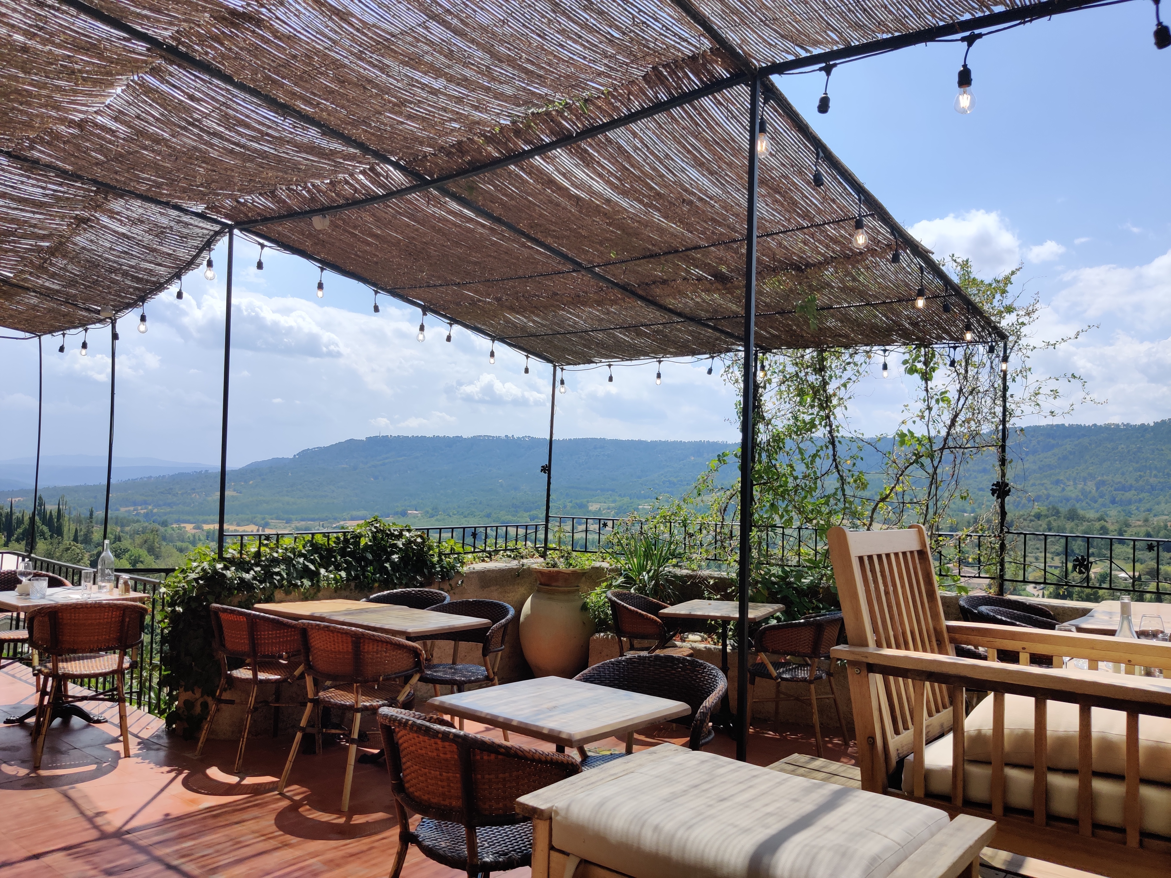 Une très belle terrasse avec une vue dégagée depuis Moustiers-Sainte-Marie, Cuisine traditionnelle, du fait maison ... Accueil très sympathique