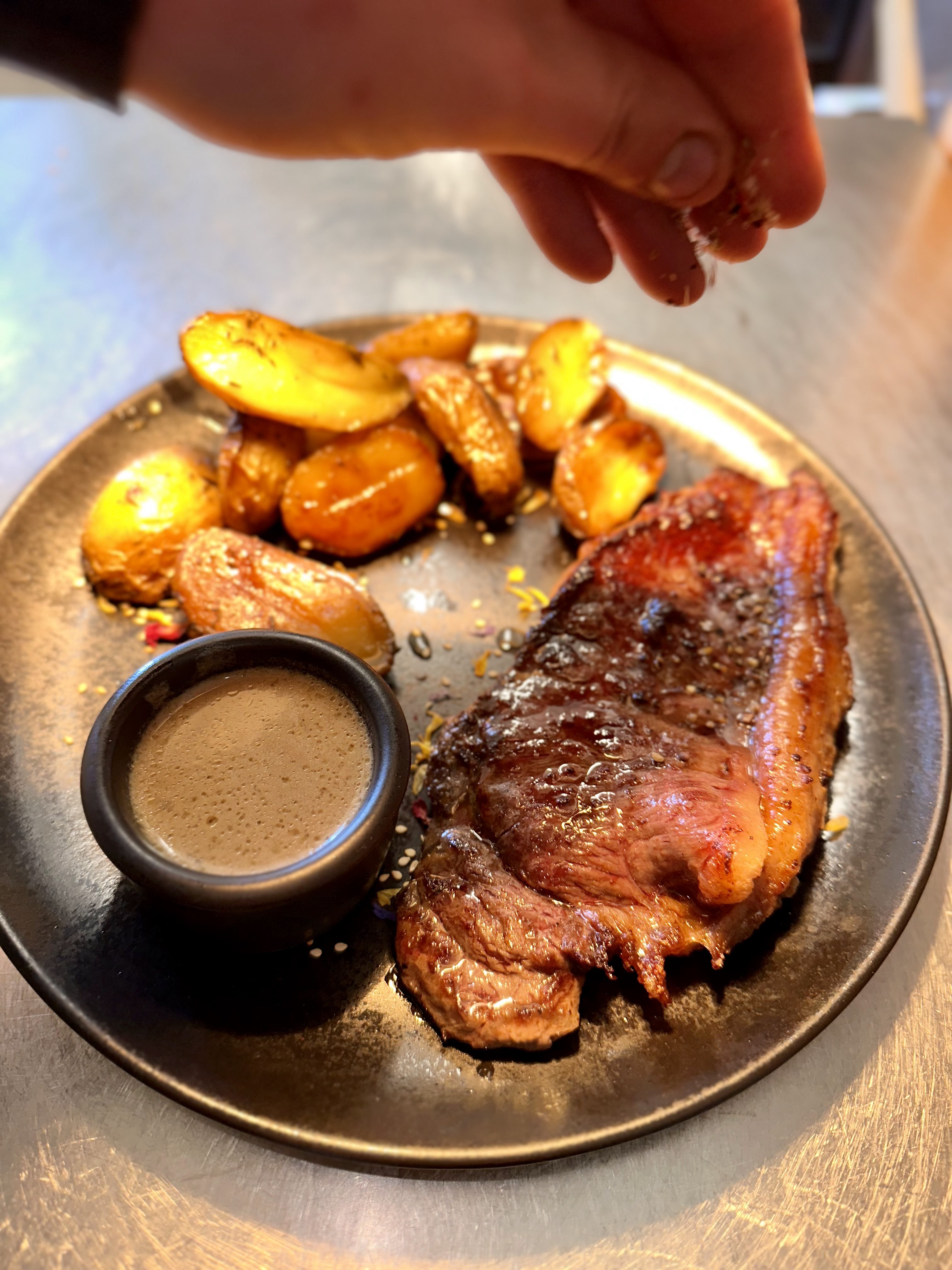 Excellente adresse Nous nous sommes régalés avec la hampe du black Angus et les gambas, suivi de la très bonne mousse au chocolat revisitée 😋 Cerise sur le gâteau : Personnel adorable Et Service rapide 🤩