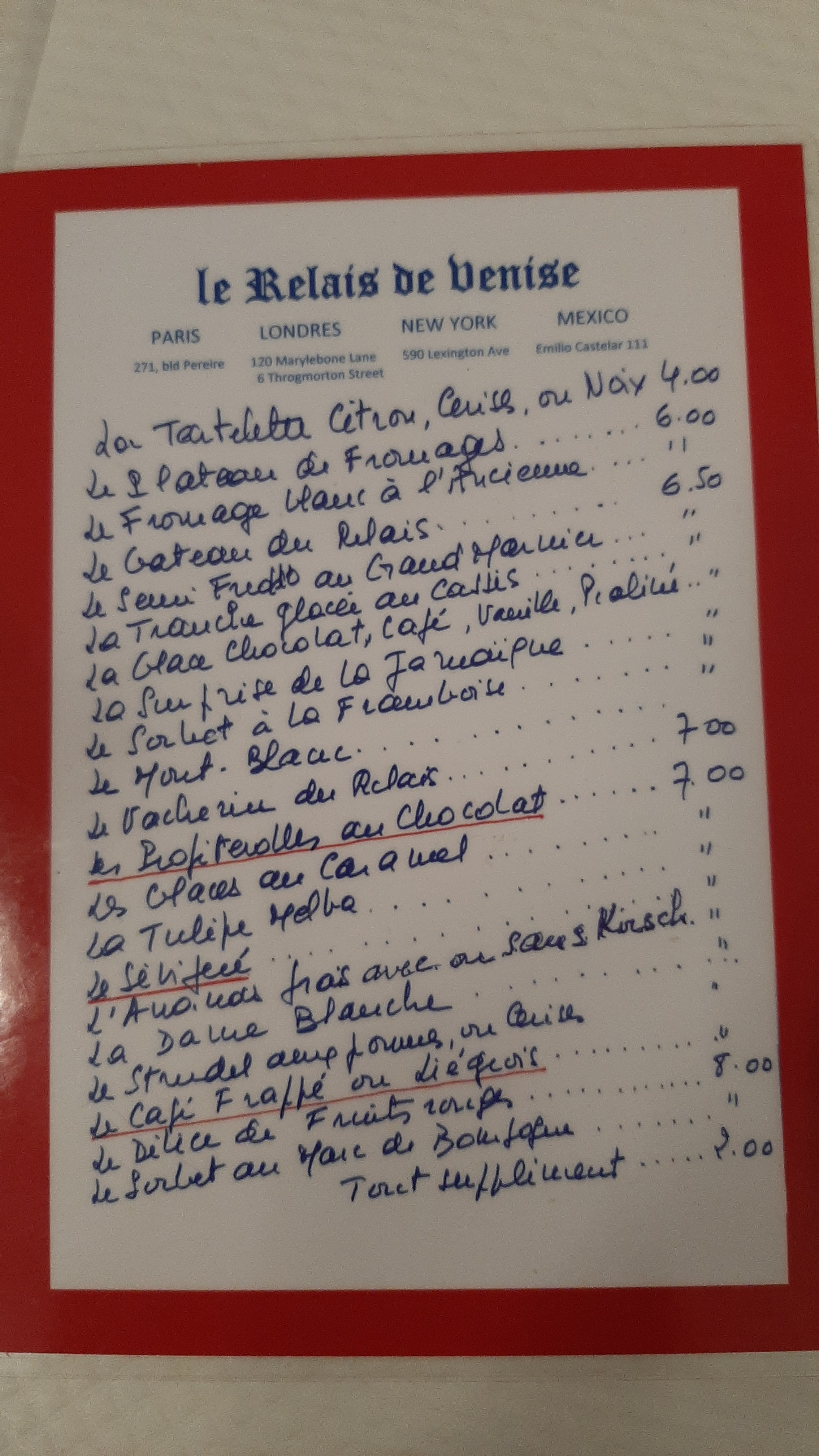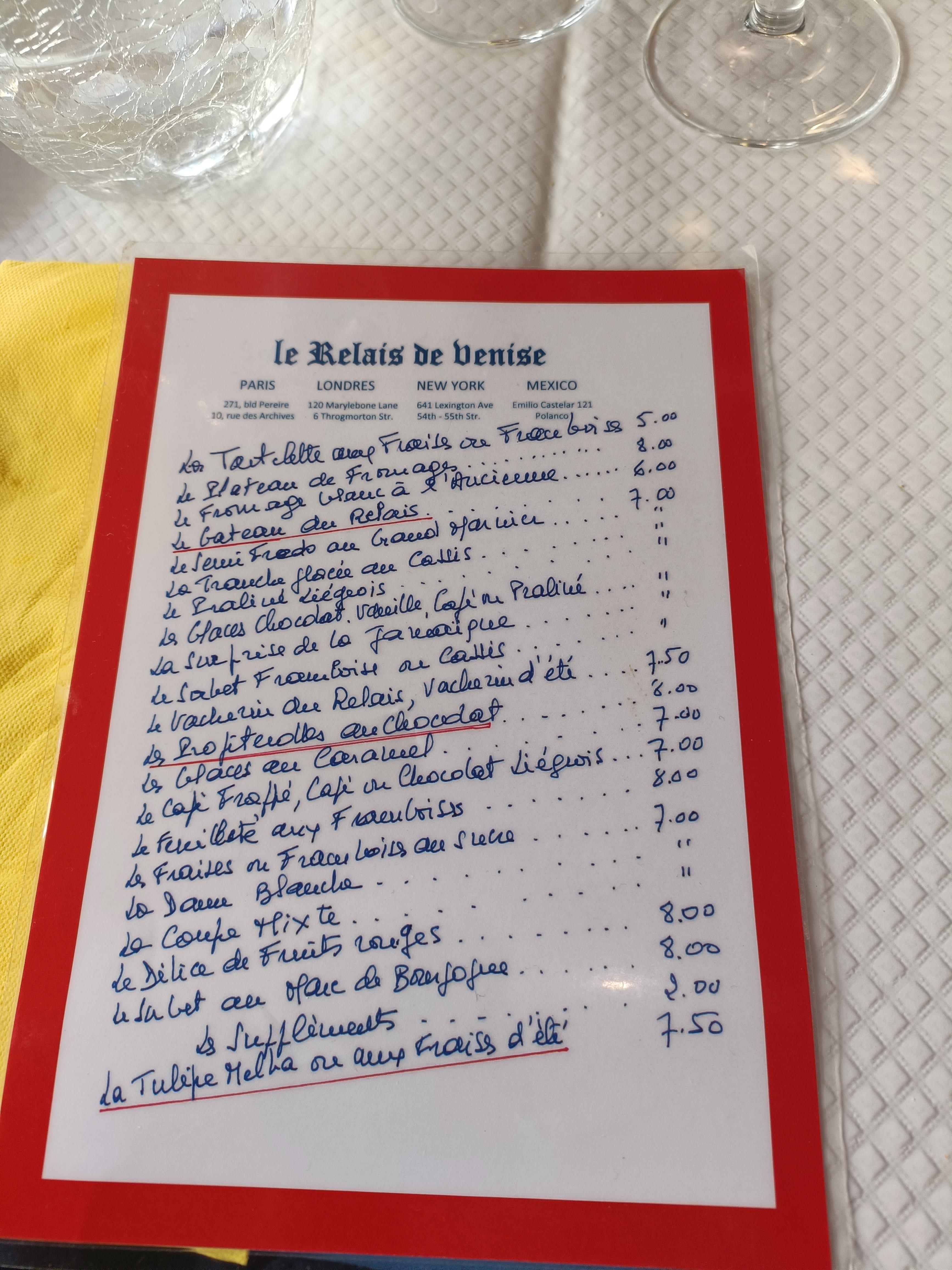 Véritable institution à Paris. Le relais de Venise a gardé son menu unique à l'identique. Une viande toujours aussi tendre avec ses frites uniques. Seul la carte des desserts s'est étoffée.