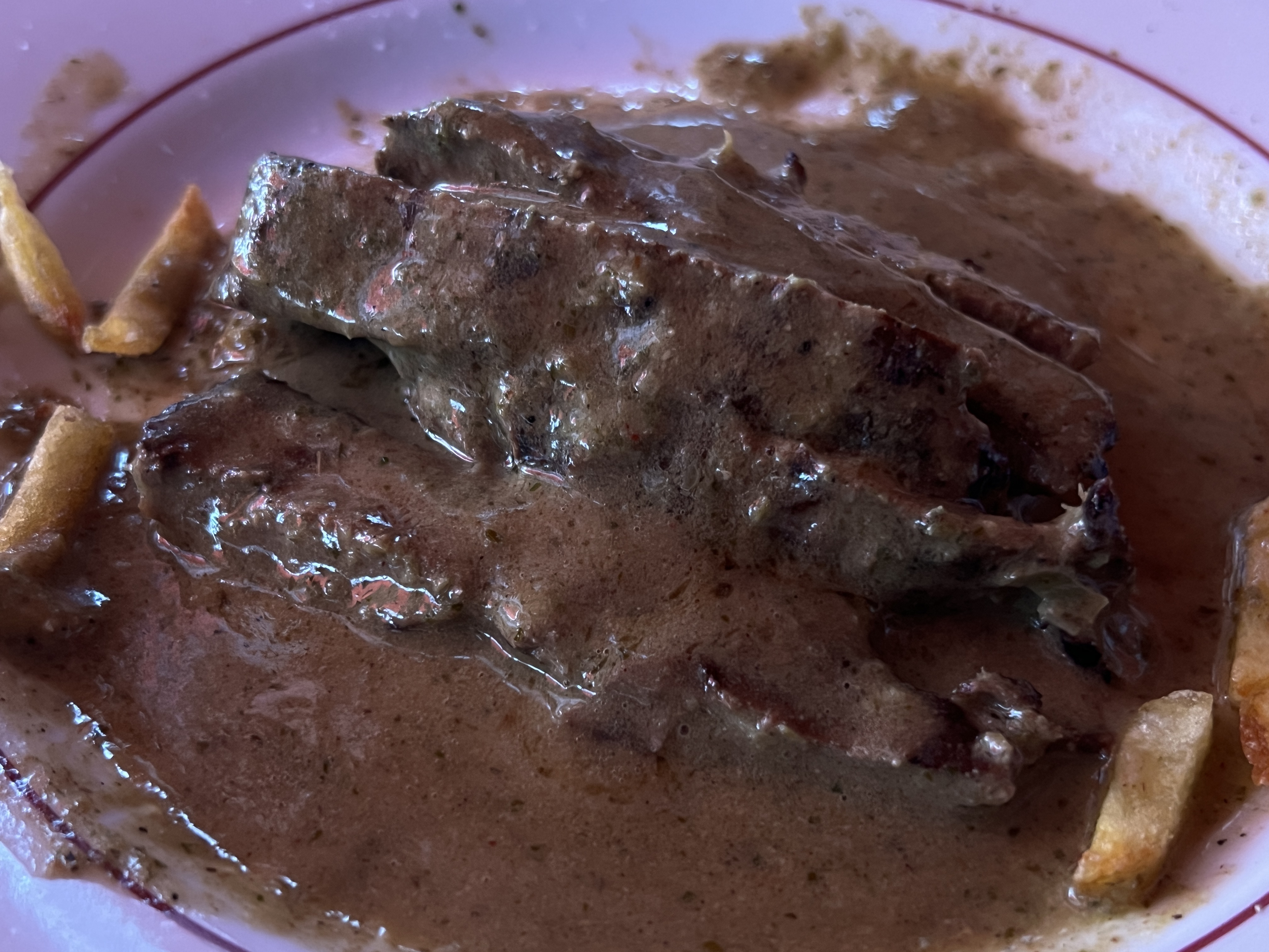 Nous sommes arrivés à la dernière minute pour le déjeuner et nous avons tout de même pu avoir une table. La viande, la sauce et les frites sont bonnes, le service est sympathique. Les portions sont assez copieuses et suffisent largement à combler un estomac vide. Petite salade également servie en entrée.