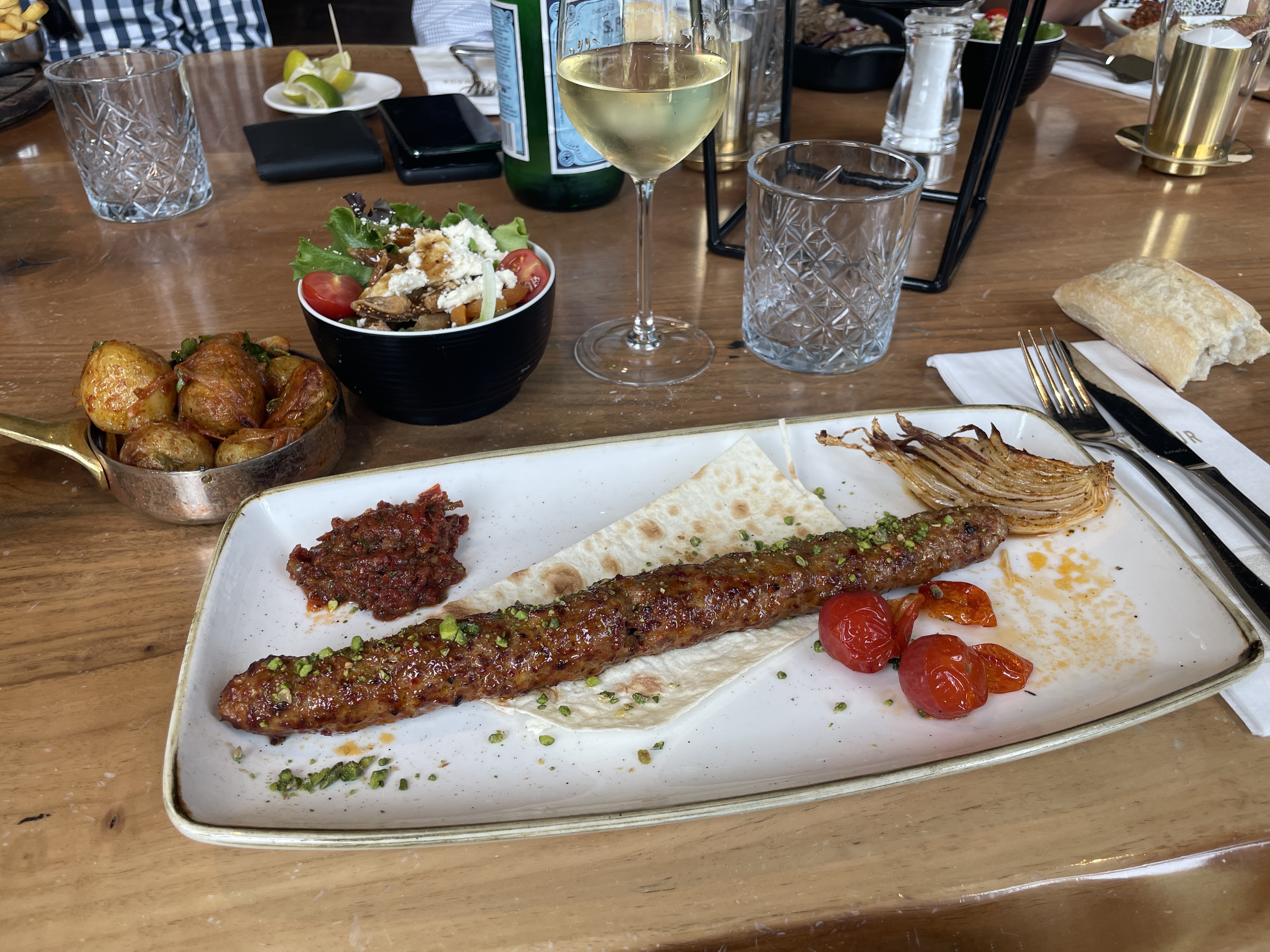 Tout était bon ! Kofte du boucher au fromage avec la purée et les légumes de saison… (les frites étaient bonnes aussi). Manque juste de sourire chez le serveur.