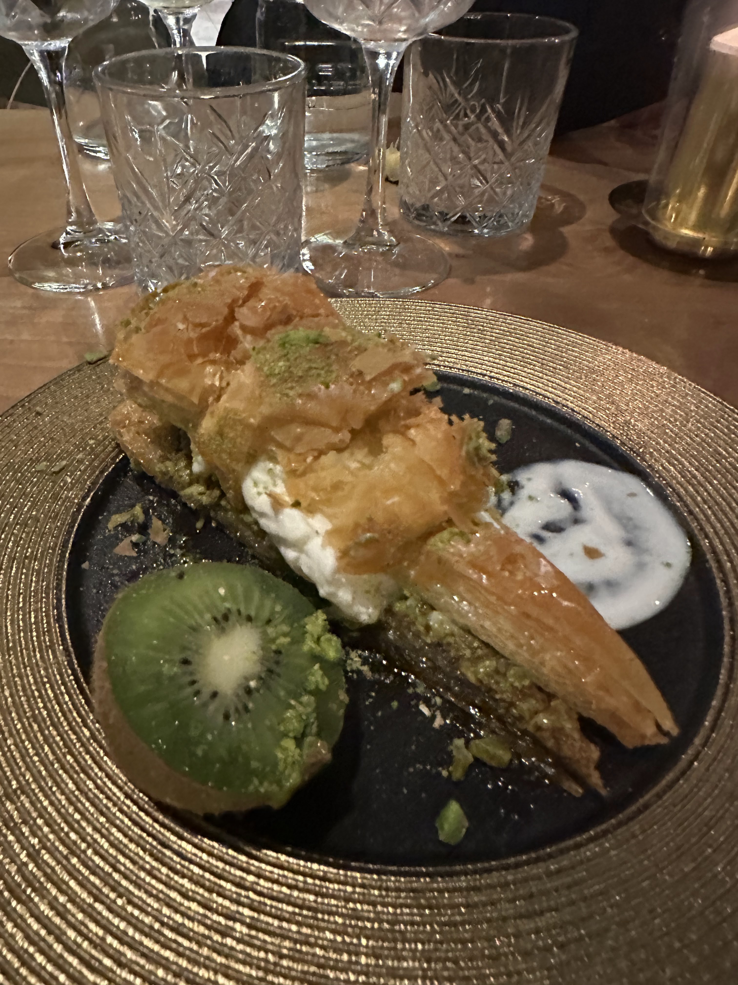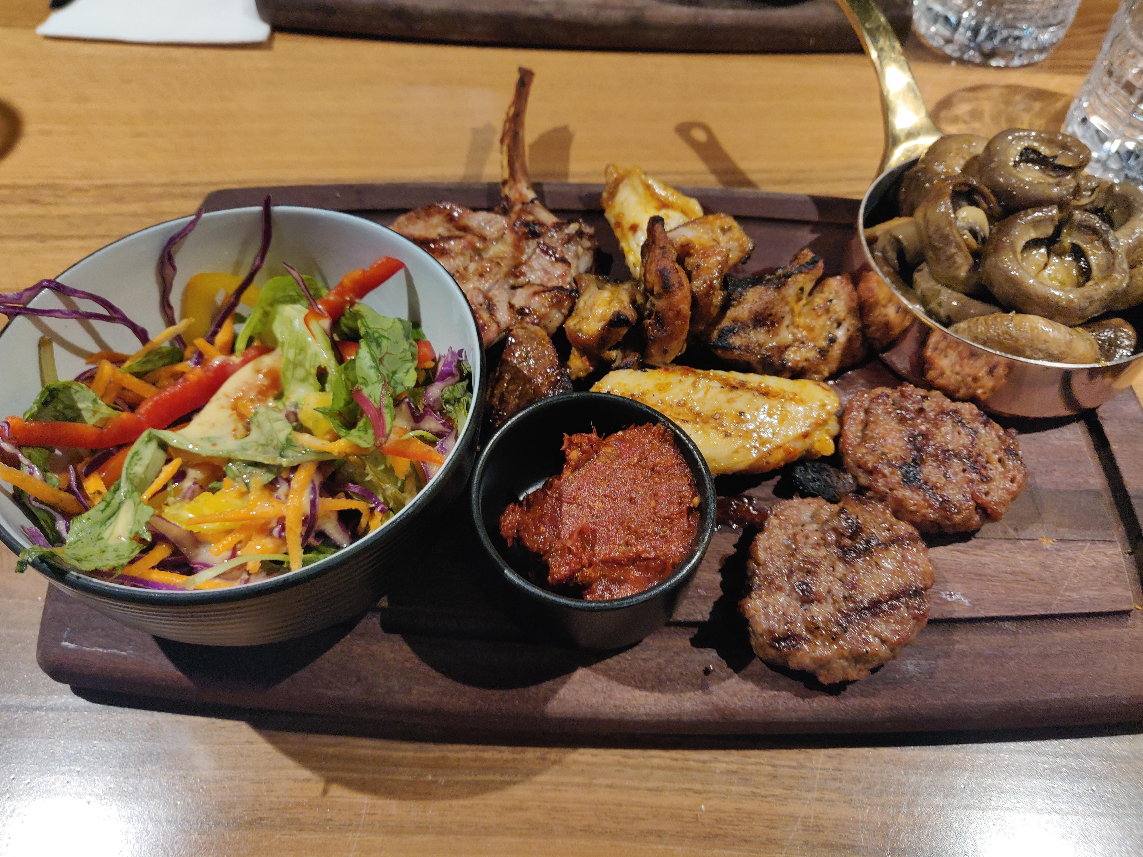 Très belle découverte. Un large choix de viande rouge ou de grillades. Nous avons testé la poitrine de boeuf a 79e. Plat a la base pour 2 mais on peut être a 3 dessus sans souci. Seul petit reproche : la purée est trop compacte et le kunefe n’était pas suffisamment cuit. Sinon, bon restaurant !