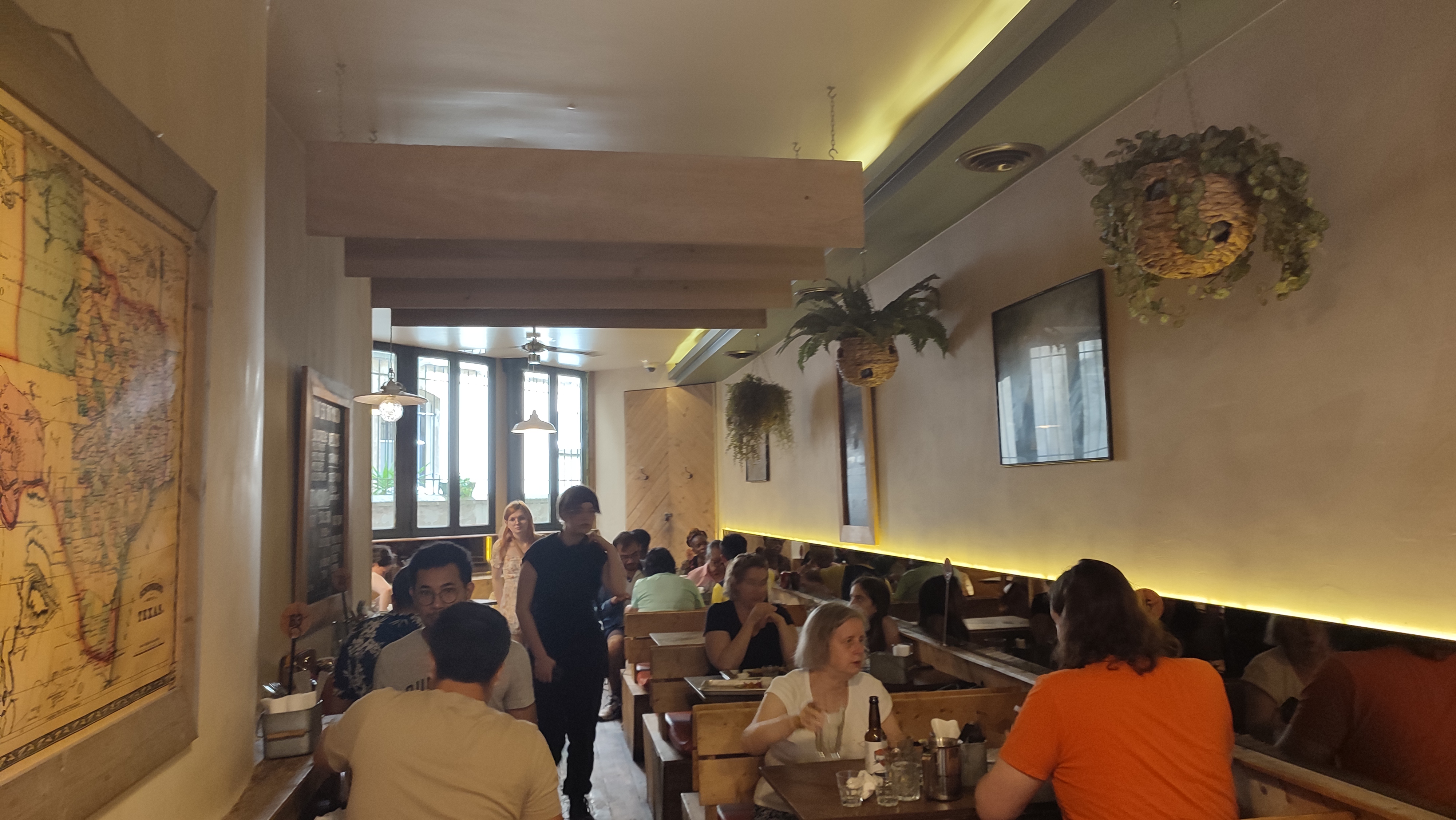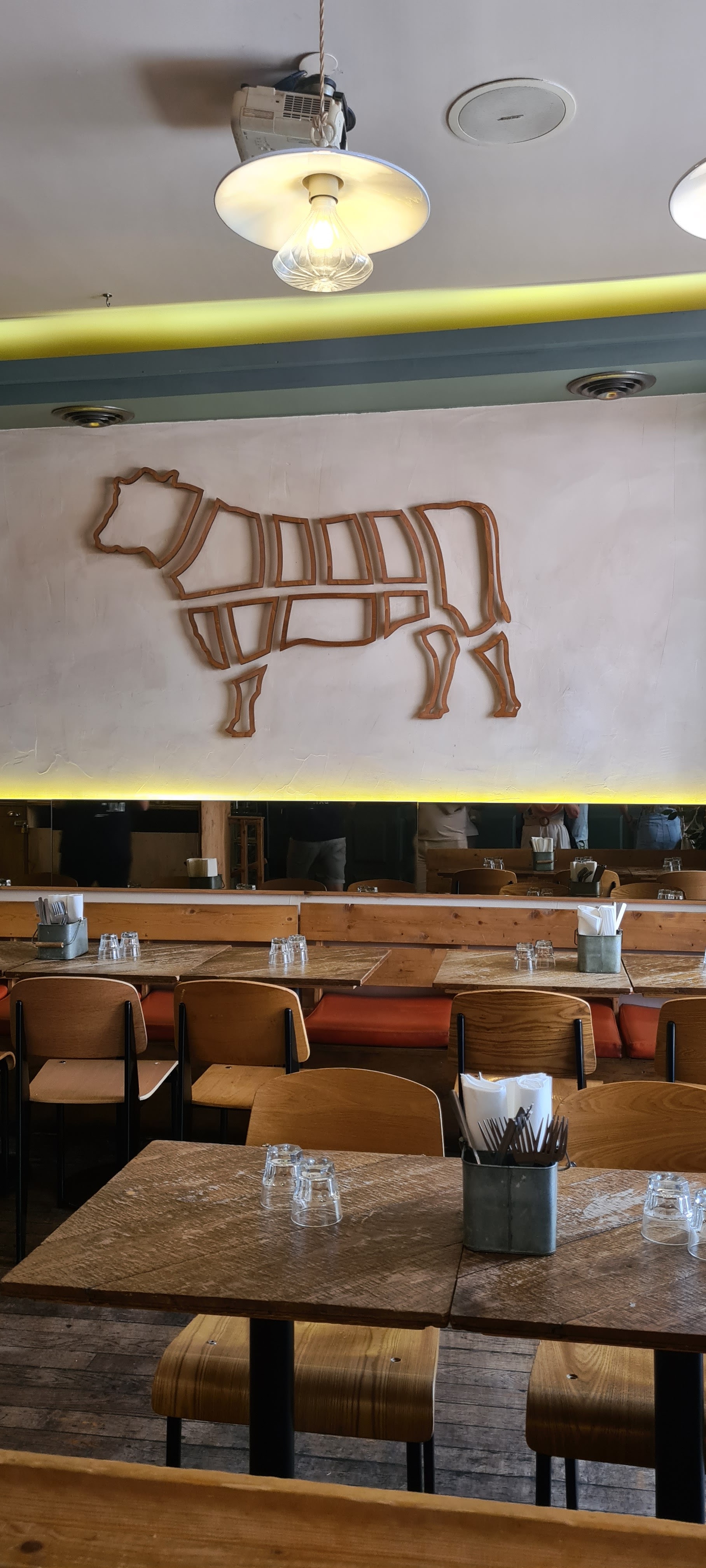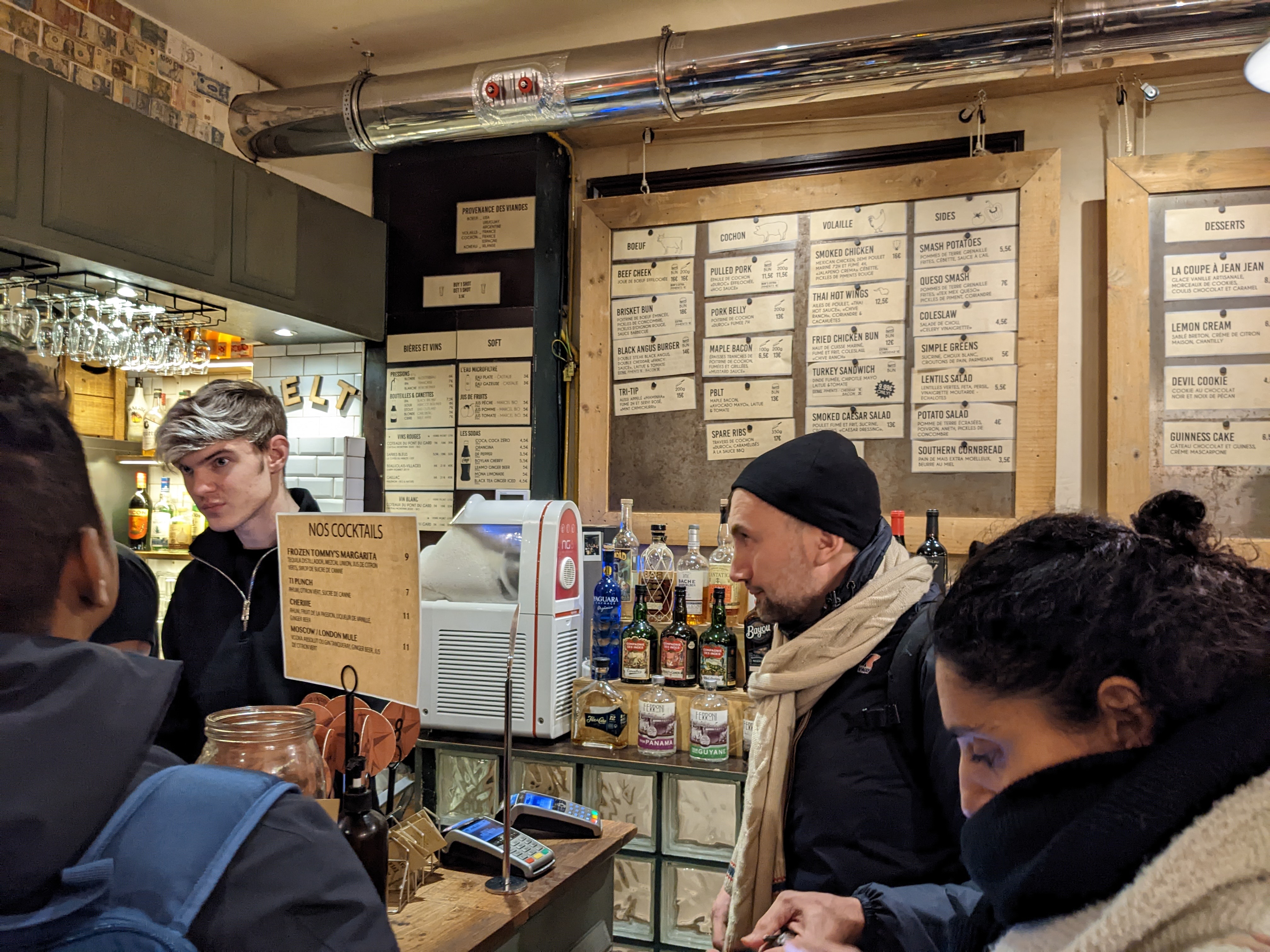 Un peu bruyant, et le personnel est très sympa. Les viandes sont bonnes, bien fumées. Par contre, j’ai pris un verre de vin rouge, degueu, sortant d’un cubique, à ce prix c’est un peu dommage…