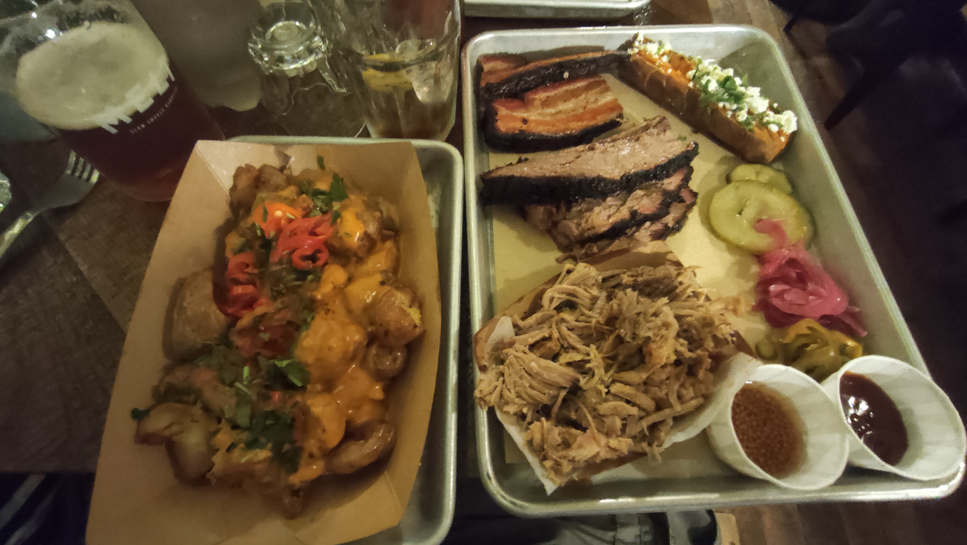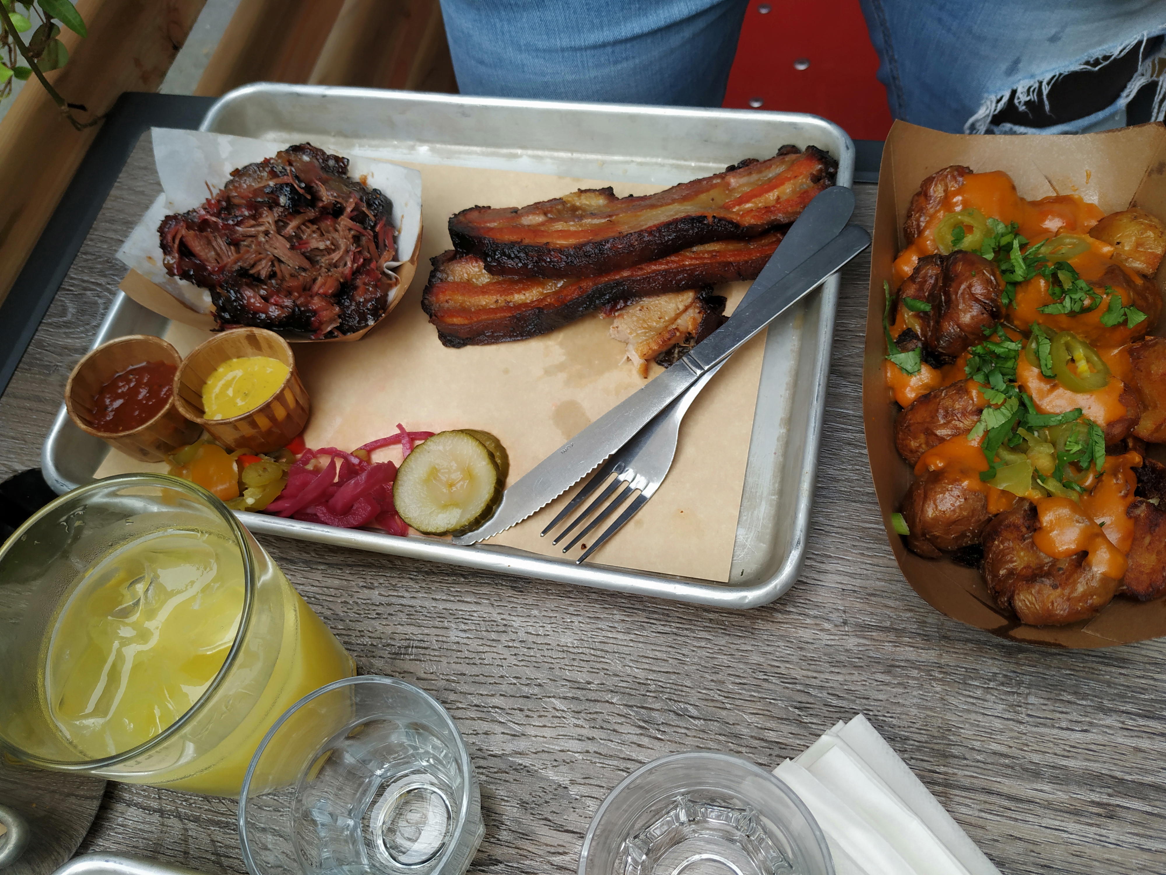 Tres rapide et surtout délicieux. La viande était d’une incroyable tendresse et très goûteuse. Le brisket était tellement bon que nous avons finis par en recommander une portion. Nous aimons beaucoup la viande donc nous avons partagé un beau plateau et n’avons pris aucun accompagnement. Bon choix, on était très content de notre repas