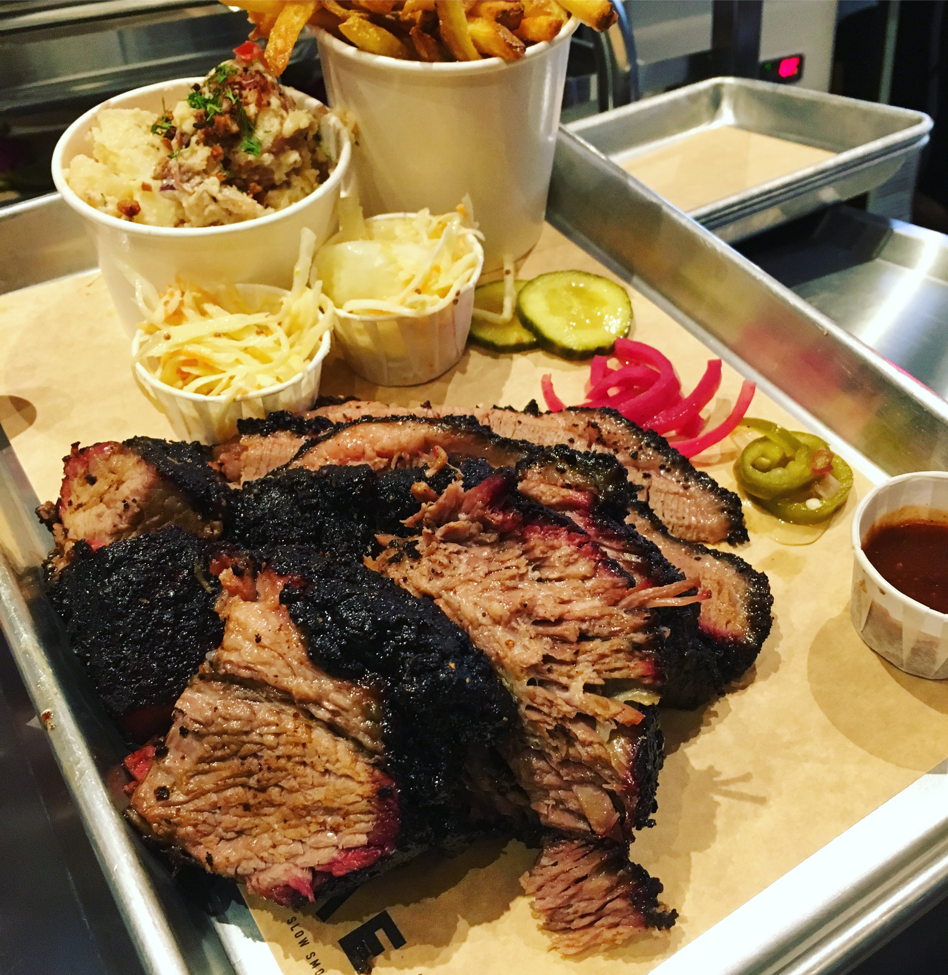 Une cuisine excellente, si vous aimez de la viande allez y les yeux fermer! Je suis allée avec mes petites sœurs. J’ai aimé toutes les viandes du brisket aux ailes de poulet thaï croustillant! Les pommes de terre excellente j’ai oublié de vous demander la recette! Vraiment je recommande à 100% Et l’accueil franchement au top les équipes tournent souvent pour vérifier que tout se passe bien et la dame au comptoir qui a prit le temps de bien nous expliquer le concept du restau c’est un 10