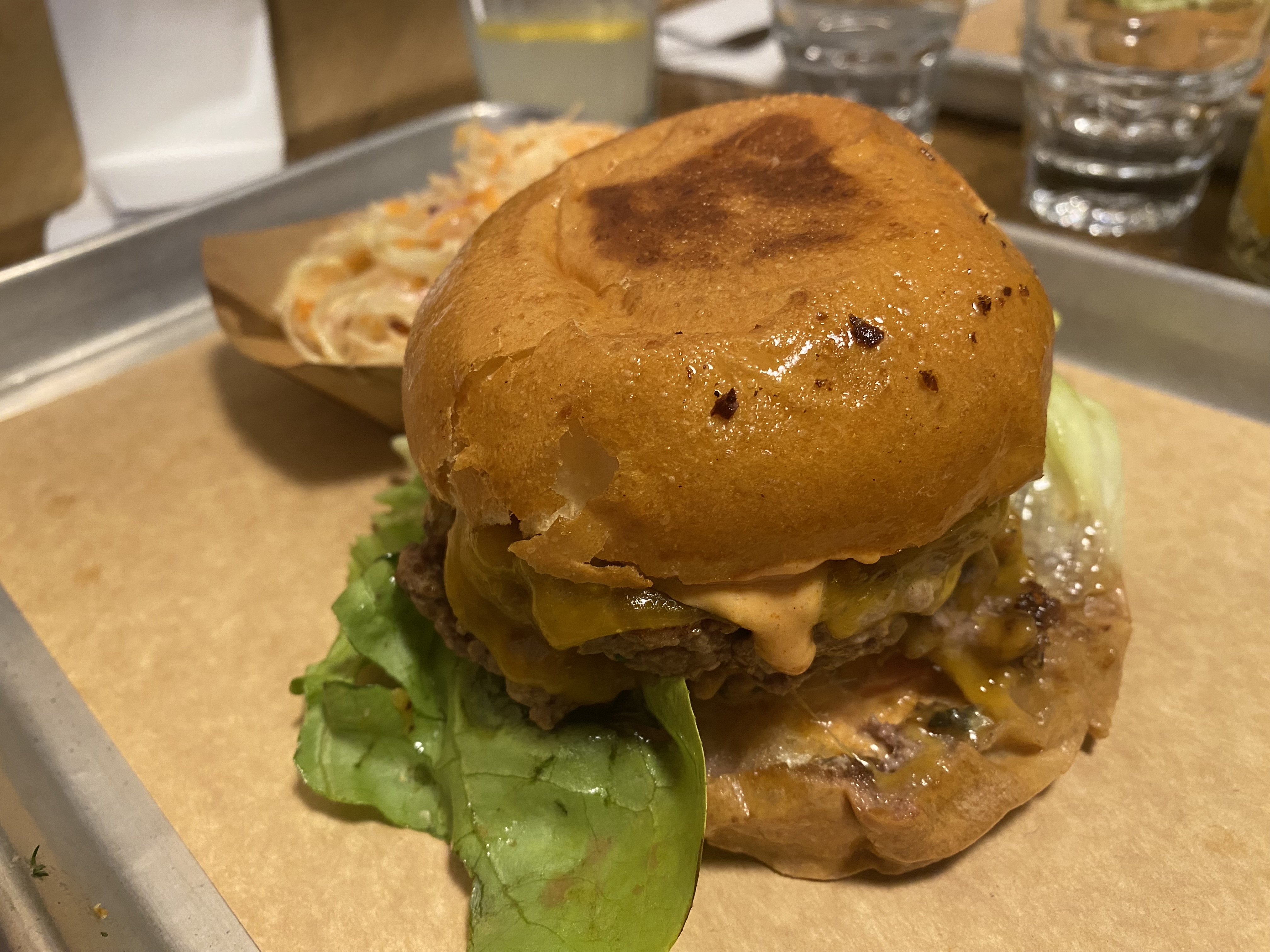 Une viande excellente. J'ai pour ma part pris du porc, très très moelleux et avec un bon goût de poivre et de fumé. Les mashed potatoes sont à tester, la sauce à l'ail est top ! Bémol sur le rapport quantité/prix, les sides n'étaient pas assez généreux à mon goût surtout selon le prix puisqu'on les paye séparément. Autre souci, la connexion !! Il s'est avéré très compliqué de regarder le menu et de payer l'addition avec le QR code, dommage.