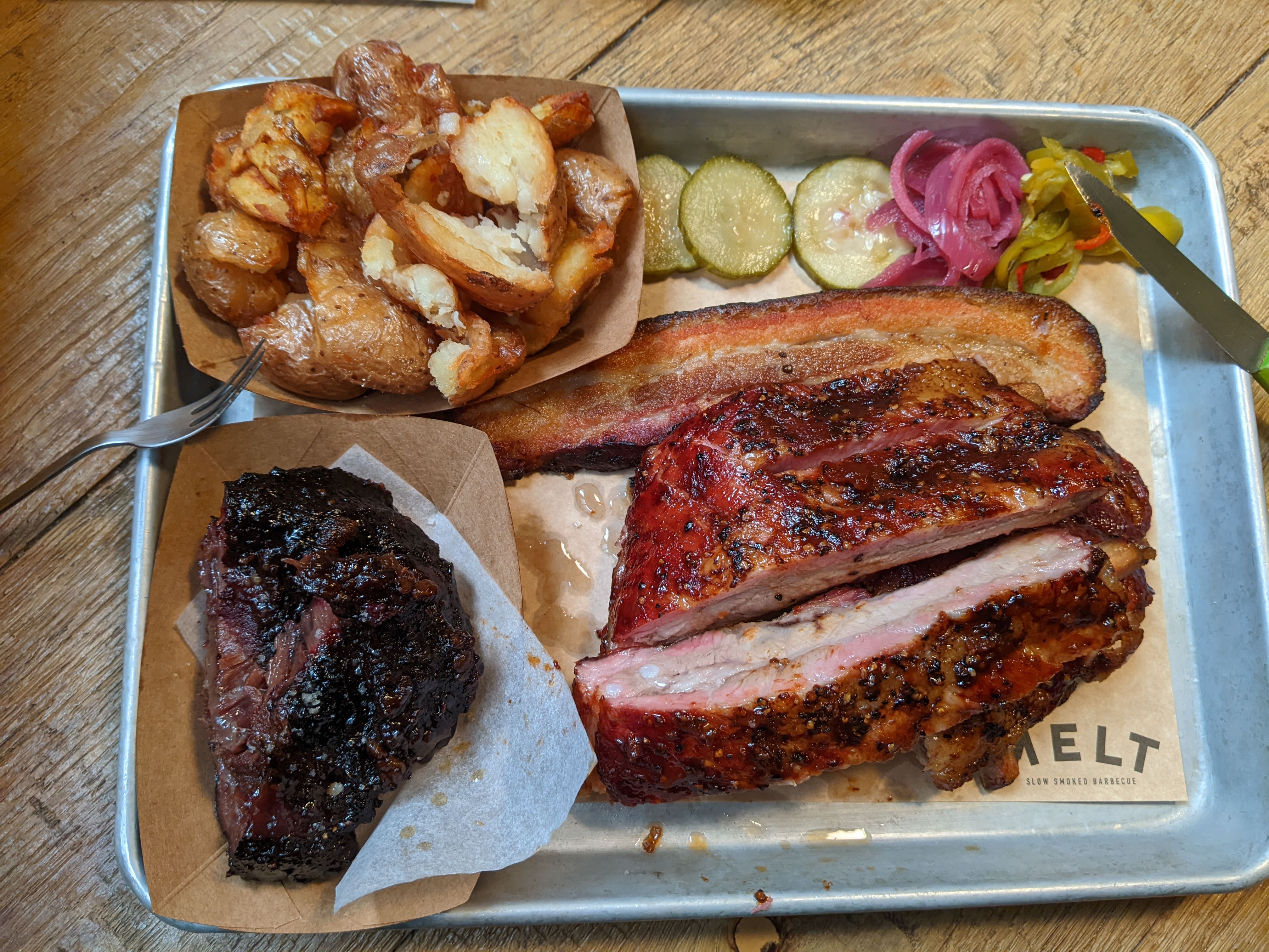 Le Melt arrivée tardive mais heureusement il resté du brisket. nous en sommes a notre 3eme visite dans se restaurant et nous mangeons toujours aussi bien a des prix correct quand ont connais le temps que ça prend pour préparé un produit smokemeat.