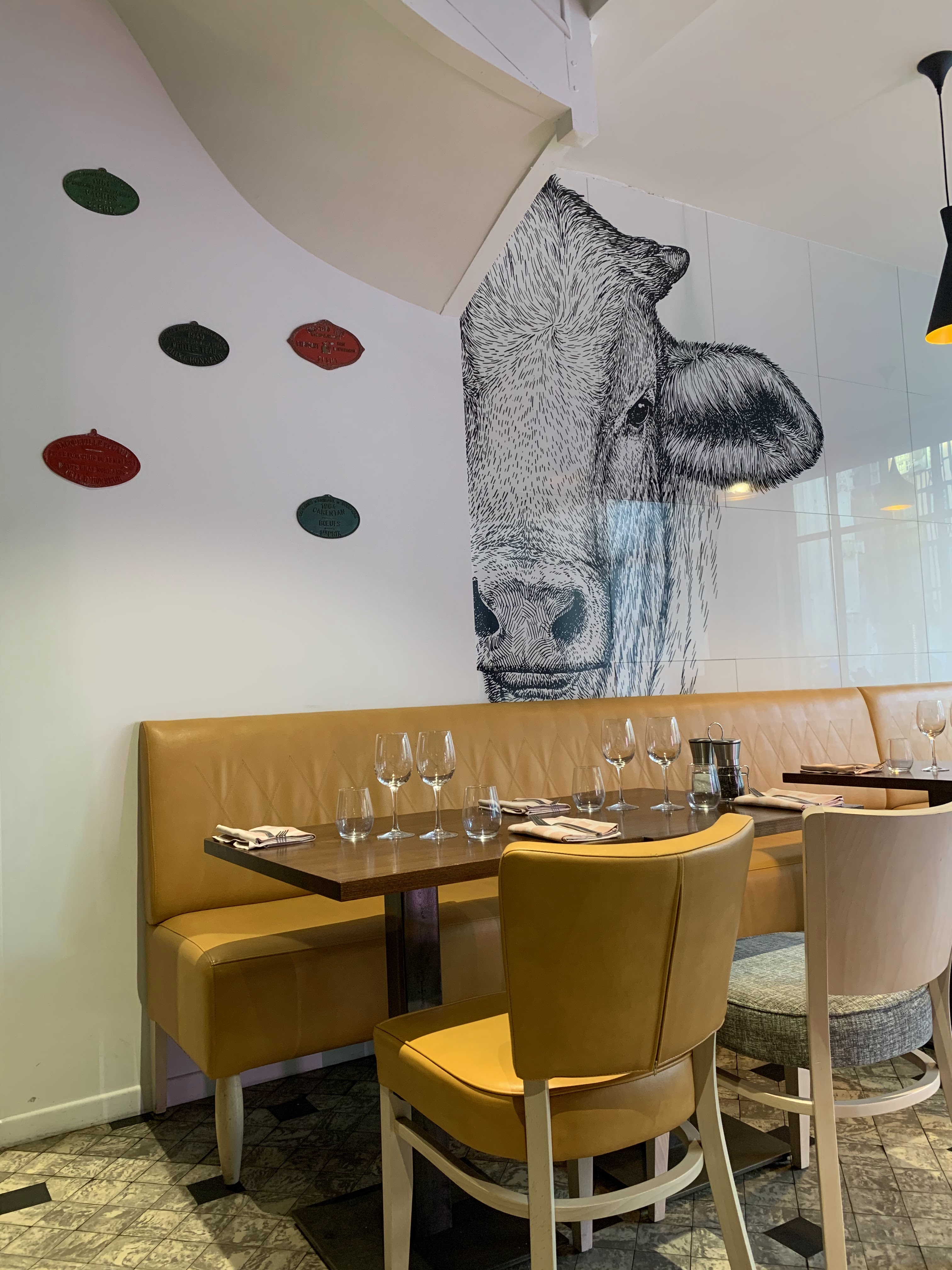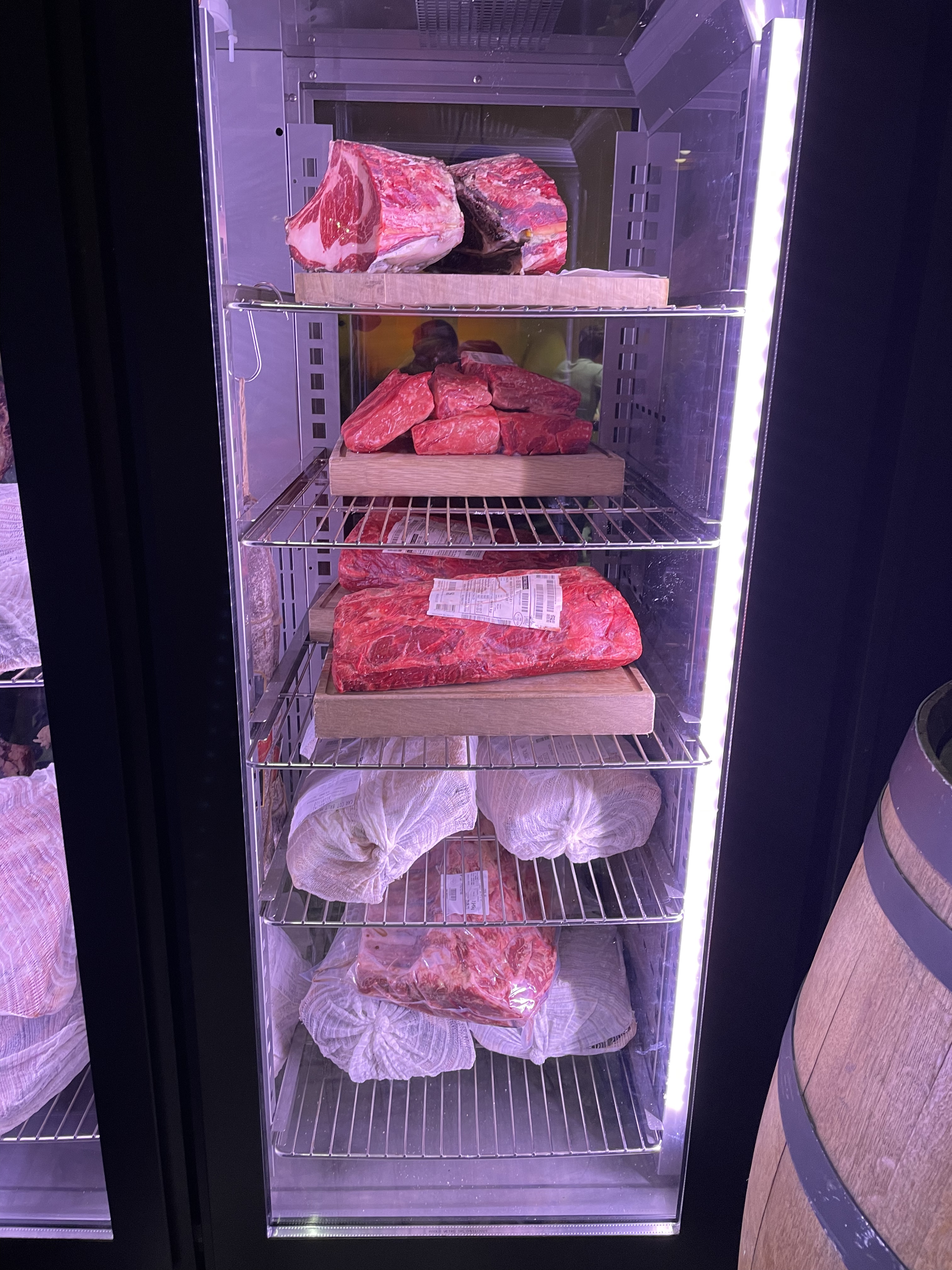 sincerement se targuer d etre un restaurant specialise dans la viande de boeuf avec une cave de maturation et de proposer un faux filet dur qui n est pas a la bonne cuisson ca la fout mal sans parler du prix exorbitant tout comme la bouteille de vin. 112 euros pour 2 personnes. je n y retournerai pas. dommage car sur papier le concept est pas mal mais ca reste sur papier