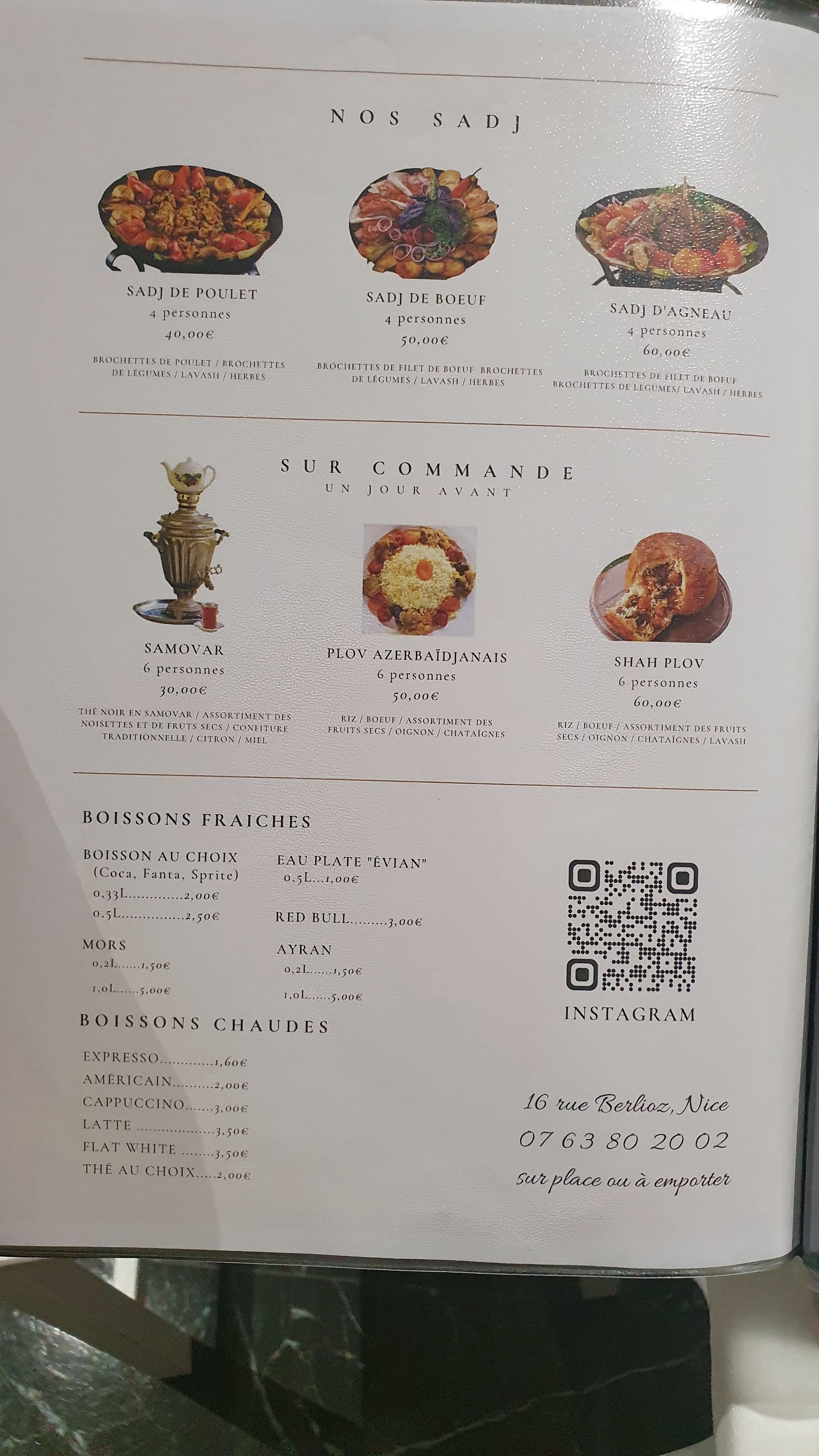 Une nourriture si délicieuse ! Cuisine azerbaïdjanaise authentique au centre de Nice. Un service de haut niveau et les propriétaires sont des gens très gentils. Hautement recommandé!